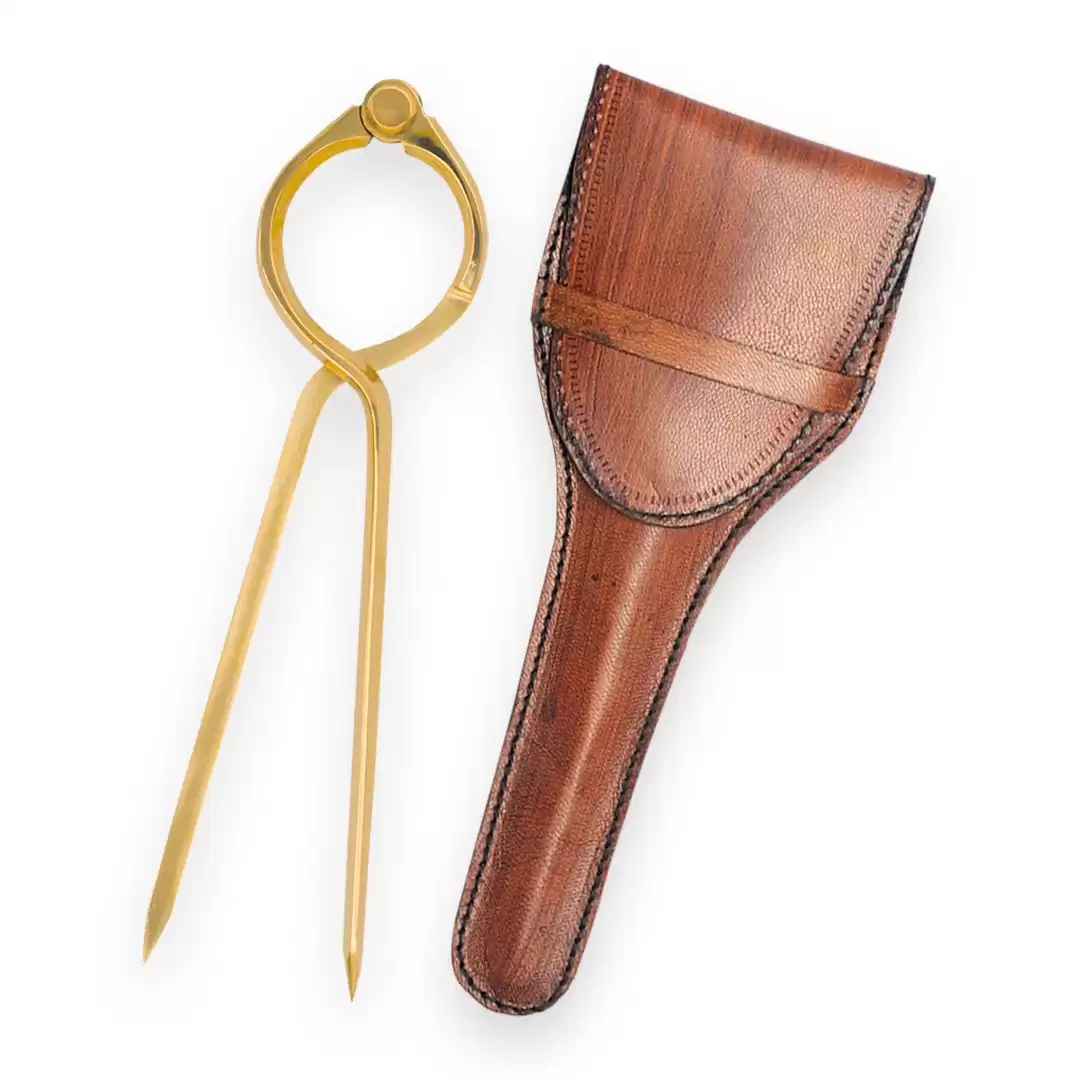 Sehr hochwertiger klassischer Einhand-Marinezirkel nach Vorbild der Britischen Admiralität aus Messing und inklusive Kunstlederetui.